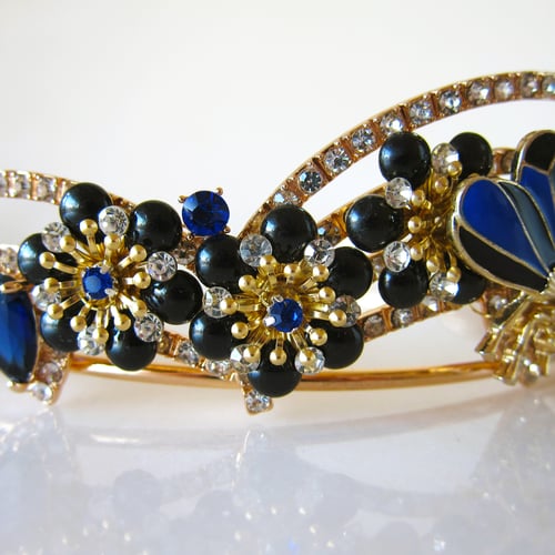 This handmade, rose gold-plated tiara is encrusted with enamel floral detailing, an enamel bumble bee centrepiece and AAA-grade cubic zirconia crystals.